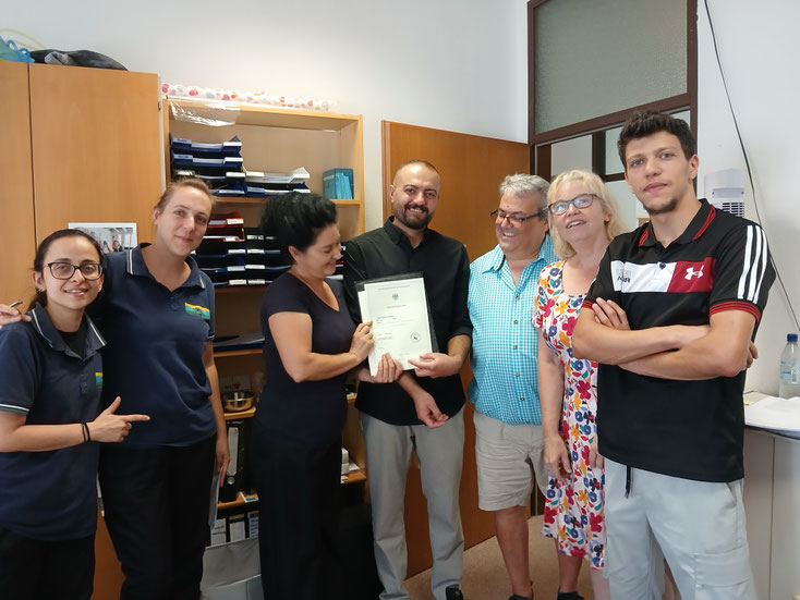 Unsere langjährige und engagierte Mitarbeiterin Ferda Waschka-Aba erhielt von unserer Pflegedienstleitung Manuela Umegbolu eine Schultüte: die Ausbildung zur einjährigen Altenpflegehelferin beginnt am 2.10.23