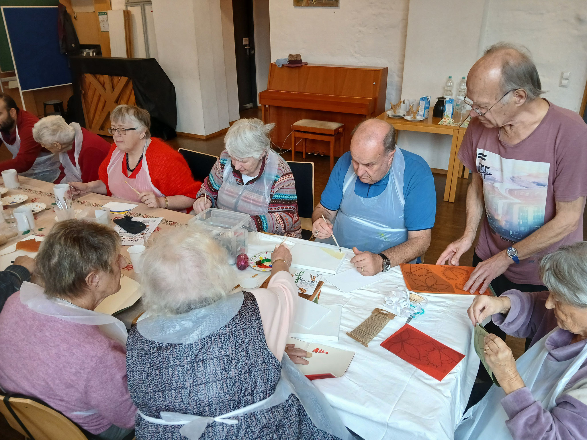 Es wurde fleißig gehäkelt beim Seniorentreff „Du und Ich – wir gemeinsam“ im Gebr. Schmid Zentrum, organisiert von Zuhause leben e.V., Projektleitung Karl Heinz Wadt